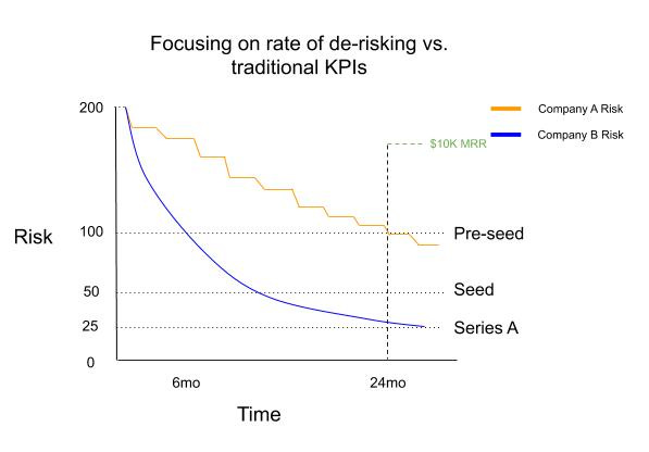When you see startups that are able to raise funding quickly despite far less traction than similar startups, it's because their rate of de-risking is high.