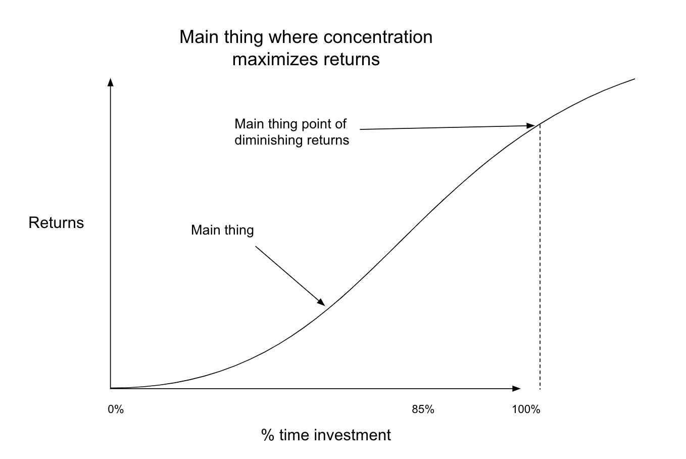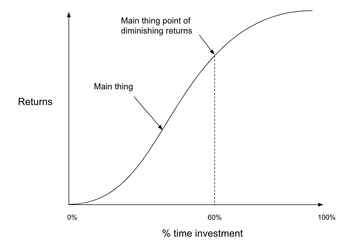Sometimes it’s worth investing in our “main thing” beyond the point of diminishing returns if it can result in breakthroughs that help us level-up our careers (which results in higher ROI on any time investment).